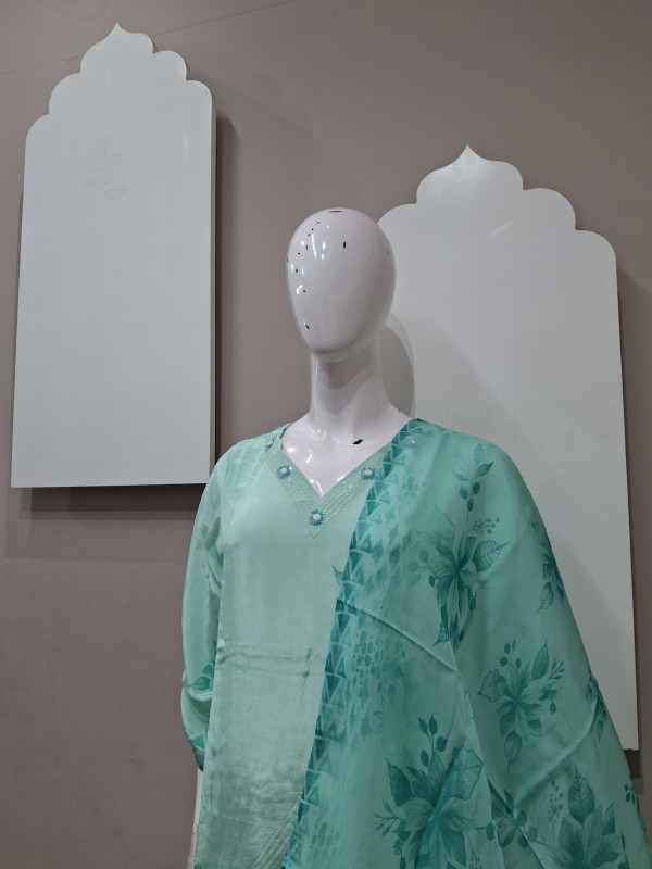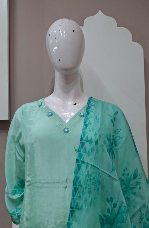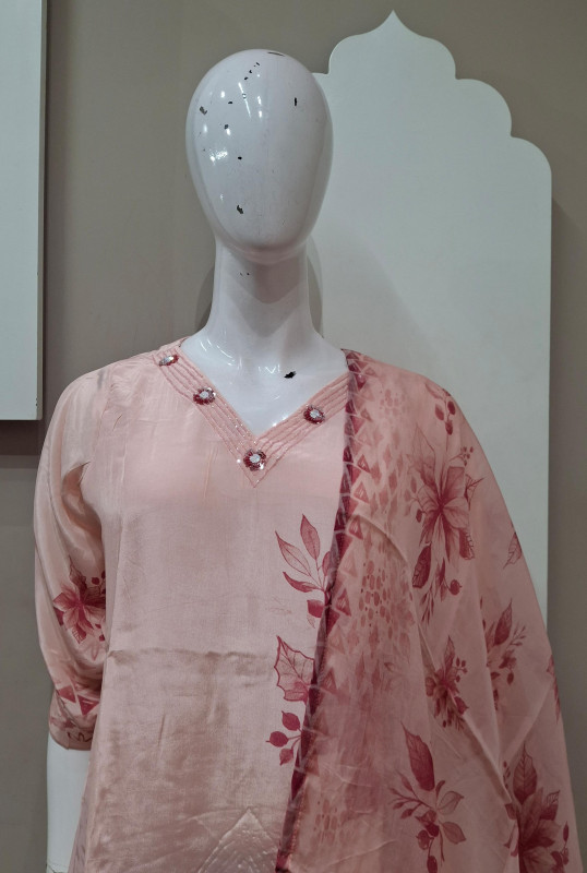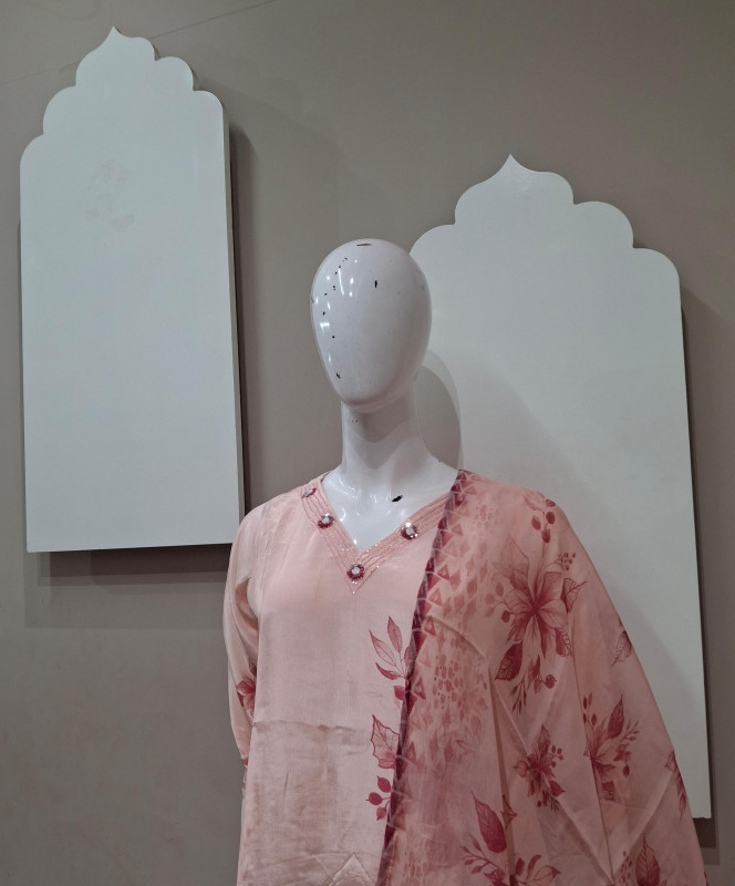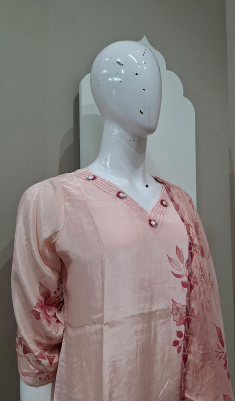 Natural crepe kurta pant duppata  featuring delicate handwork and bold digital floral print . Perfect for chic daywear and classy evenings