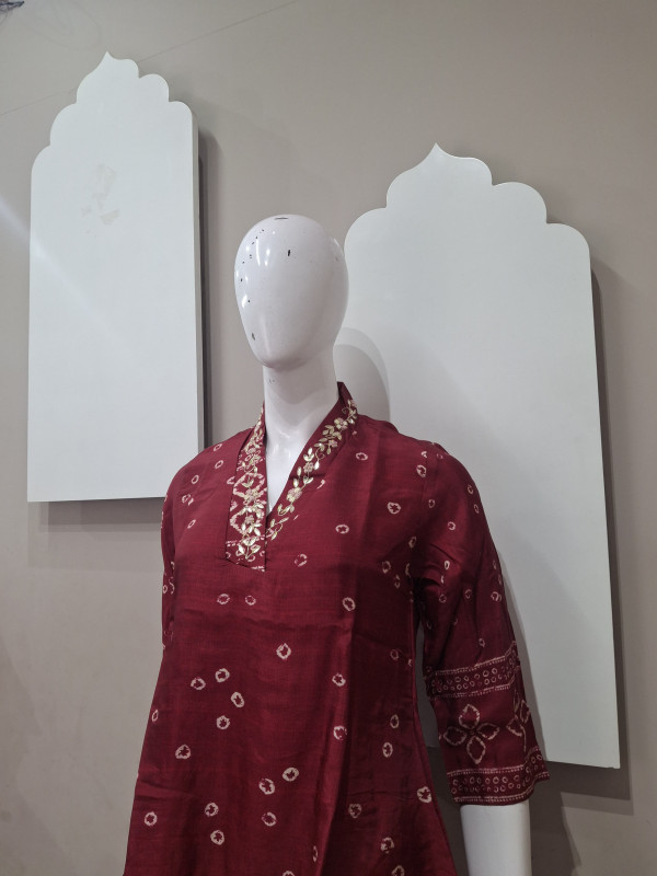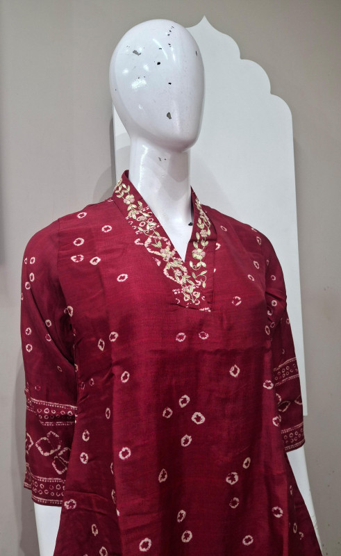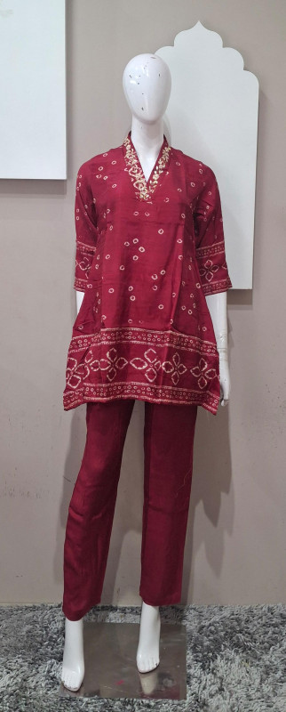 Elegant co-ord set crafted in soft Russian silk fabric, featuring classic Bandhani-style digital print. Designed with a comfortable fit and graceful flow, this set offers a perfect blend of traditional charm and modern style. Ideal for festive wear, casual gatherings, and elegant day outings.
